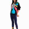 Leggings de malha de algodão longos com uma estampa de sorriso multicolorida. Este produto é adquirido através de um sistema de balanço de massa e pode não conter um algodão melhor.