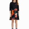 Um vestido de mangas curtas com uma saia floral e uma saia flutuante e flutuante. De Desigual, você está apoiando nosso investimento em Better Cotton. Este produto é adquirido através de um sistema de balanço de massa e pode não conter um algodão melhor.
