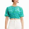 Desigual mulheres Blusa floral curta reunida 6F4T2693