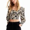 Desigual mulheres blusa de espartilho floral cortada 6F4T2250