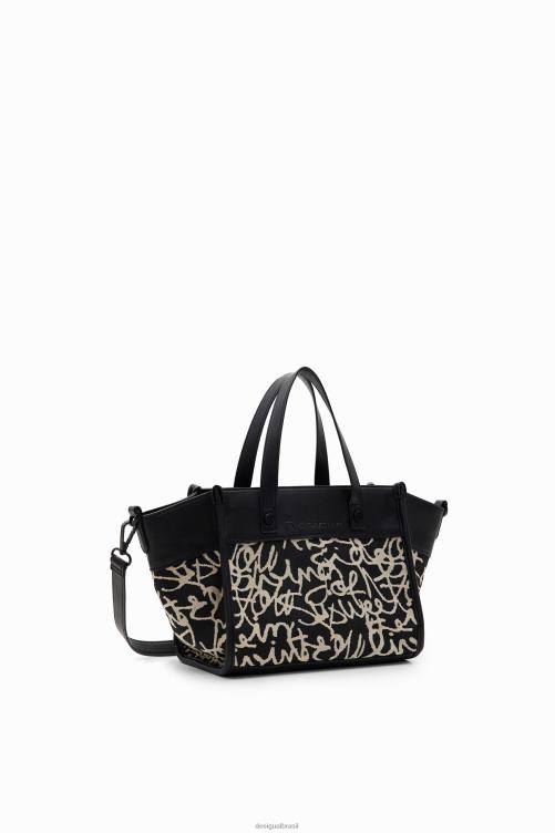 Desigual mulheres bolsa de texto de tela de tamanho médio 6F4T21217