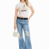 Desigual mulheres T-shirt de ilustração com nervuras esbeltas 6F4T2752
