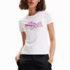 Uma camiseta de manga curta com um logotipo desigual de impressão e aplique de strass contrastante. Este produto é adquirido através de um sistema de balanço de massa e pode não conter um algodão melhor. Altura do modelo: 179 cm; tamanho s