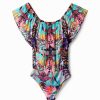 Desigual mulheres traje de espartilho de tiras tropicais 6F4T2514