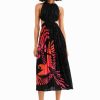 Desigual mulheres vestido midi com nervuras florais 6F4T2958